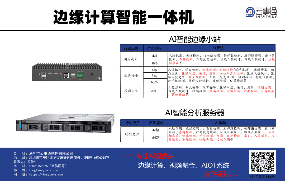 主要應用:學校、工廠、園區、工地、大廈、小區等安裝攝像頭升級成AI智能識別系統應用;