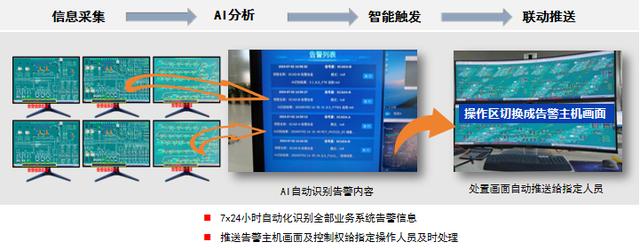 主動敏銳的“信息找人”。系統(tǒng)采用AI技術識別和告警推送,將SCADA等系統(tǒng)的各類告警信息提煉加工,自動判斷警情的級別、類別和責任部門,自動執(zhí)行預定義的業(yè)務處理流程,將告警信息推送給對應的調度員,操作區(qū)自動切換成告警主機畫面。
